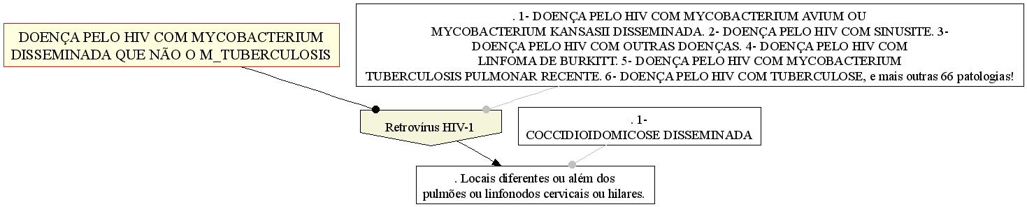 Doença pelo HIV com Mycobacterium disseminada que não o M_tuberculosis DOENÇAS PELO HIV. Doença pelo HIV complicado com Mycobacterium disseminada que não o M_tuberculosis. Sexo: Não informado. Idade: Não informada.Distribuição.Diagnóstico diferencial. Epidemiologia: Clínica: Laboratório: IMUNO:. AIDS, com evidências lab para HIV.