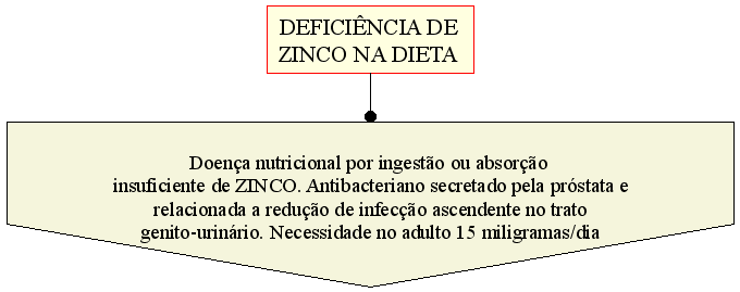 . Impotência. Estatura baixa. Retardo na puberdade. Sensibilidade gustativa diminuída. Dermatite, hemorrágica. Linhas de Beau. Depressões transversais do leito ungueal, geralmente de cor marrom-escuro. Laboratório: RX do Abdome:. Pequenas fístulas intestinais. Erro em
