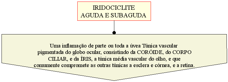 Iridociclite aguda e subaguda PATOLOGIAS DA ÚVEA. Ciclite, Irite, Uveíte anterior aguda, recorrente ou subaguda; Uveíte; Uveitis. Sexo: Não informado. Idade: Não informada.Distribuição.Diagnóstico diferencial. Epidemiologia: Clínica: Laboratório: Erro em