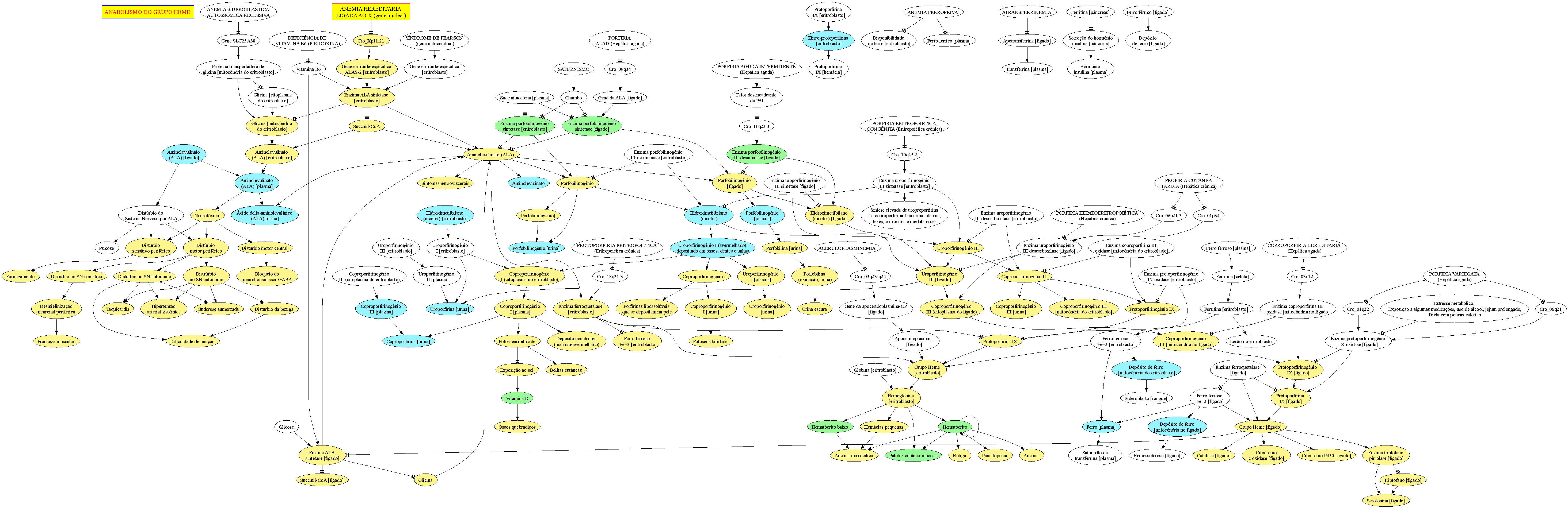 Anemia sideroblástica ligada ao X ANEMIAS SIDEROBLÁSTICAS | PORFIRIAS. (ASLX); Anemia hereditária ligada ao cromossomo X; Deficiência da enzima ALA sintetase; Anemia sideroblástica hipocrômica ligada ao sexo; Anemia sideroblástica hereditária ligada ao cromossomo X; X-linked sideroblastic anemia. A rigor não é uma Porfiria já que o ALA (ácido gama-aminolevulinato) oxidado não é roxa. #Síndrome de Pearson (anemia mitocondrial). Descrita em 1945 por Thomas Cooley (1871-1945), pediatra americano. Sexo: 1M.