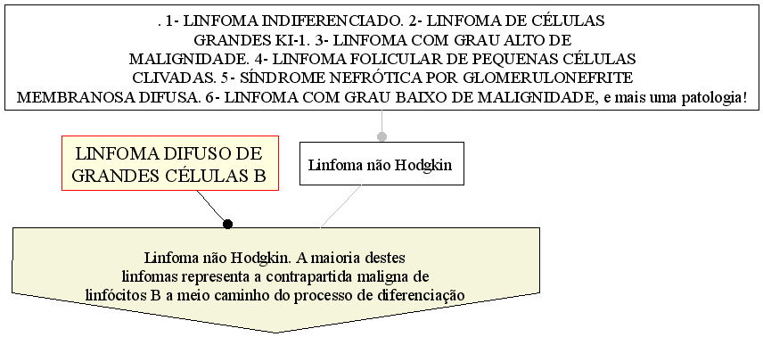 Linfoma difuso de grandes células B LINFOMAS DE CÉLULAS B. (DLBCL); Linfoma não-Hodgkin de grandes células B, variante centroblástica; Linfoma não-Hodgkin de grandes células B, variante imunoblástica; Reticulossarcoma; Sarcoma de células reticulares; Linfoma maligno de células B; Linfoma difuso de grandes células foliculares; Linfoma difuso de células grandes indiferenciadas. Acrônimo: Diffuse Large B-Cell Lymphoma. Descrita em 1951 por Eva Grotton (-). Sexo: Não informado. Idade: Adulto. Meia-idade. Idoso.