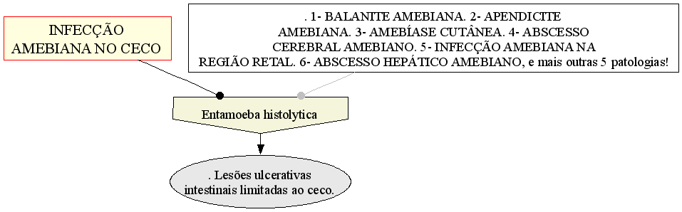 Entamoeba histolytica & Lesões ulcerativas intestinais limitadas ao ceco.