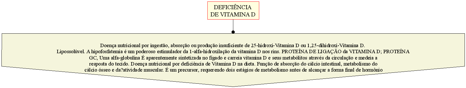 Deficiência de Vitamina D VITAMINAS LIPOSSOLÚVEIS. INAS. Hipovitaminose D; (vitamina D); Avitaminose D; Vitamin D deficiency. Sexo: Não informado. Idade: Não informada.Distribuição.Diagnóstico diferencial. Epidemiologia: . NUTRIÇÃO: isolado a partir do óleo do fígado de peixe e é utilizado no tratamento e prevenção do raquitismo. PROGNÓSTICO: Hipocalcemia.