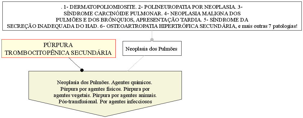 Neoplasia dos Pulmões. Agentes químicos. Púrpura por agentes físicos. Púrpura por agentes vegetais. Púrpura por agentes animais. Pós-transfusional. Por agentes infecciosos.