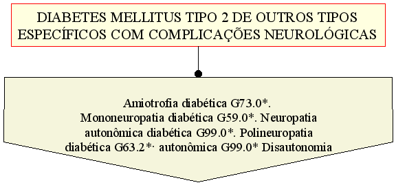 . Diabetes mellitus tipo 2 com neuropatia autonômica; Diabetes mellitus tipo 2 complicado com neuropatia autonômica diabética; Amiotrofia diabética; Mononeuropatia diabética; Neuropatia autonômica diabética; Polineuropatia diabética: autonômica; Disautonomia.