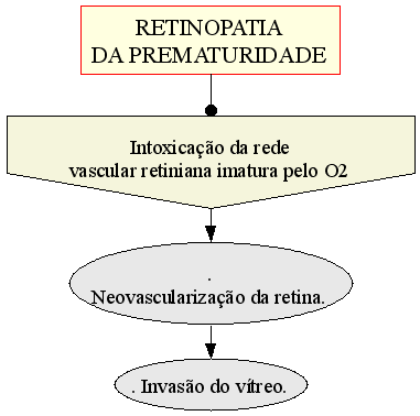 Distribuição.Diagnóstico diferencial. Epidemiologia: FATORES DE RISCO: Baixo peso ao nascer, idade gestacional curta, duração de tempo com oxigênio suplementar, tempo em ventilador mecânico; papel da luz excessiva em berçários de recém-nascidos HISTÓRIA PESSOAL:. Inalação de oxigênio, em altas concentrações. PROGNÓSTICO: Por último, conversão da retina em uma massa fibrosa que pode ser vista sob a forma de uma membrana retrolental densa; geralmente, o crescimento do olho é interrompido. Microftalmia, eventual. Cegueira, eventual. A contínua fibrose pode causar descolamento da retina.