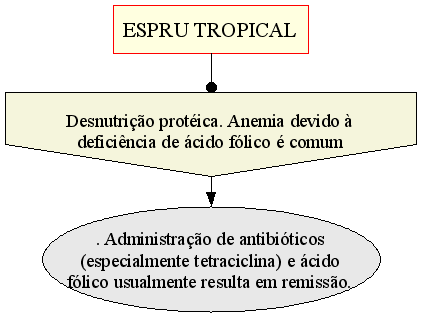 Espru tropical ABSORÇÃO INTESTINAL. Síndrome de malabsorção intestinal. Esteatorreia tropical; Sprue tropical. #Espru celíaco. Descrita em 1759 por William Hillary (1697-1763), médico inglês. Sexo: Não informado. Idade: Não informada.Distribuição. Diagnóstico diferencial. Epidemiologia: . PROGNÓSTICO: Evolução em anos. Administração de antibióticos (especialmente tetraciclina) e ácido fólico usualmente resulta em remissão.