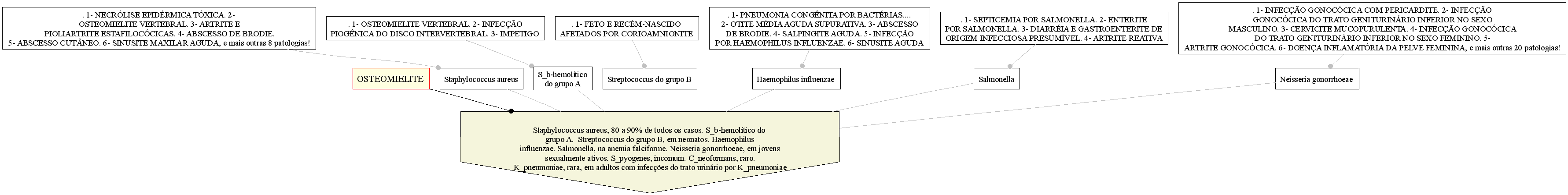Osteomielite INFLAMAÇÃO, INFECÇÃO, INFESTAÇÃO E TUMORES ÓSSEOS. Osteomyelitis; Dupuytren-Nélaton disease. Infecção óssea coma destruição progressiva do osso cortical e cavidade medular e causada predominantemente por bactérias. #Osteíte, que atinge apenas o córtex ósseo e não é limitada somente às infecções. Descrita em 1844 por Auguste Nélaton (1807-1873), cirurgião francês. Sexo: Não informado. Idade: Não informada.Distribuição.Diagnóstico diferencial. Epidemiologia: HISTÓRIA PESSOAL:. Fratura dos ossos longos. Fratura dos vértebras. Insuficiência vascular.