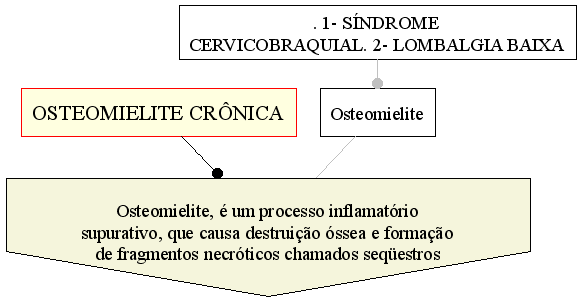 Osteomielite crônica Outra osteomielite crônica. Sexo: Não informado. Idade: Não informada.Distribuição.Diagnóstico diferencial. Epidemiologia: . PROGNÓSTICO: Há, portanto, componentes agudo e crônico simultaneamente. Isto é próprio da osteomielite bacteriana, que pode arrastar-se por anos, levando a considerável destruição e remodelação ósseas.