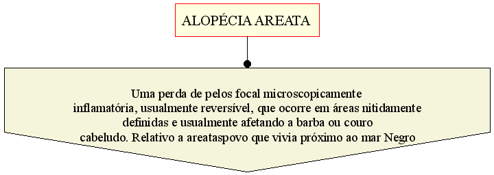 11- Regiões perfeitamente lisas sem cabelos, uma placa alopécica lisa com coloração da pele normal atingindo o couro cabeludo ou qualquer área pilosa do corpo.