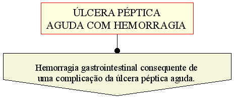 Úlcera péptica aguda com hemorragia Úlcera péptica aguda complicado com hemorragia; Hemorragia por úlcera péptica; Úlcera péptica hemorrágica; Peptic ulcer hemorrhage. Sexo: Não informado. Idade: Não informada.Distribuição.Diagnóstico diferencial. Epidemiologia: . PROGNÓSTICO: Mortalidade de 6-10%.