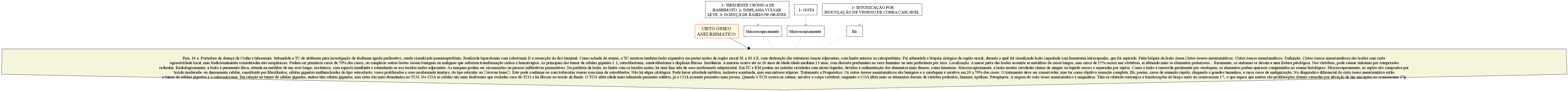 PROGNÓSTICO: Acompanham vários tipos de tumores ósseos e lesões não neoplásicas. Se numerosas, podem sugerir diagnóstico diferencial com o tumor de células gigantes. Septo vascularizado. O alto grau de vascularização dos septos é responsável pelas hemorragias nas cavidades do cisto ósseo aneurismático.