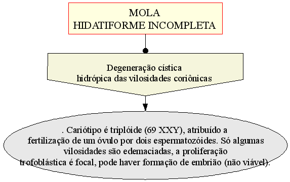 Distribuição.Diagnóstico diferencial. Epidemiologia: . Degeneração cística hidrópica das vilosidades coriônicas acompanhadas por alterações hiperplásicas e anaplásicas do epitélio coriônico. Ao contrário de uma mola completa, na qual não há feto, uma mola parcial tem um feto porque cromossomas maternos estão presentes. a transformação em coriocarcinoma é rara. PROGNÓSTICO: Evolução geralmente benigna.